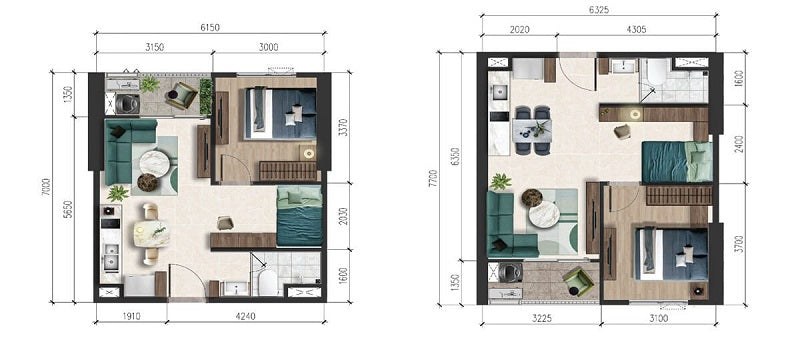 Căn 1 phòng ngủ, 1 phòng ngủ +